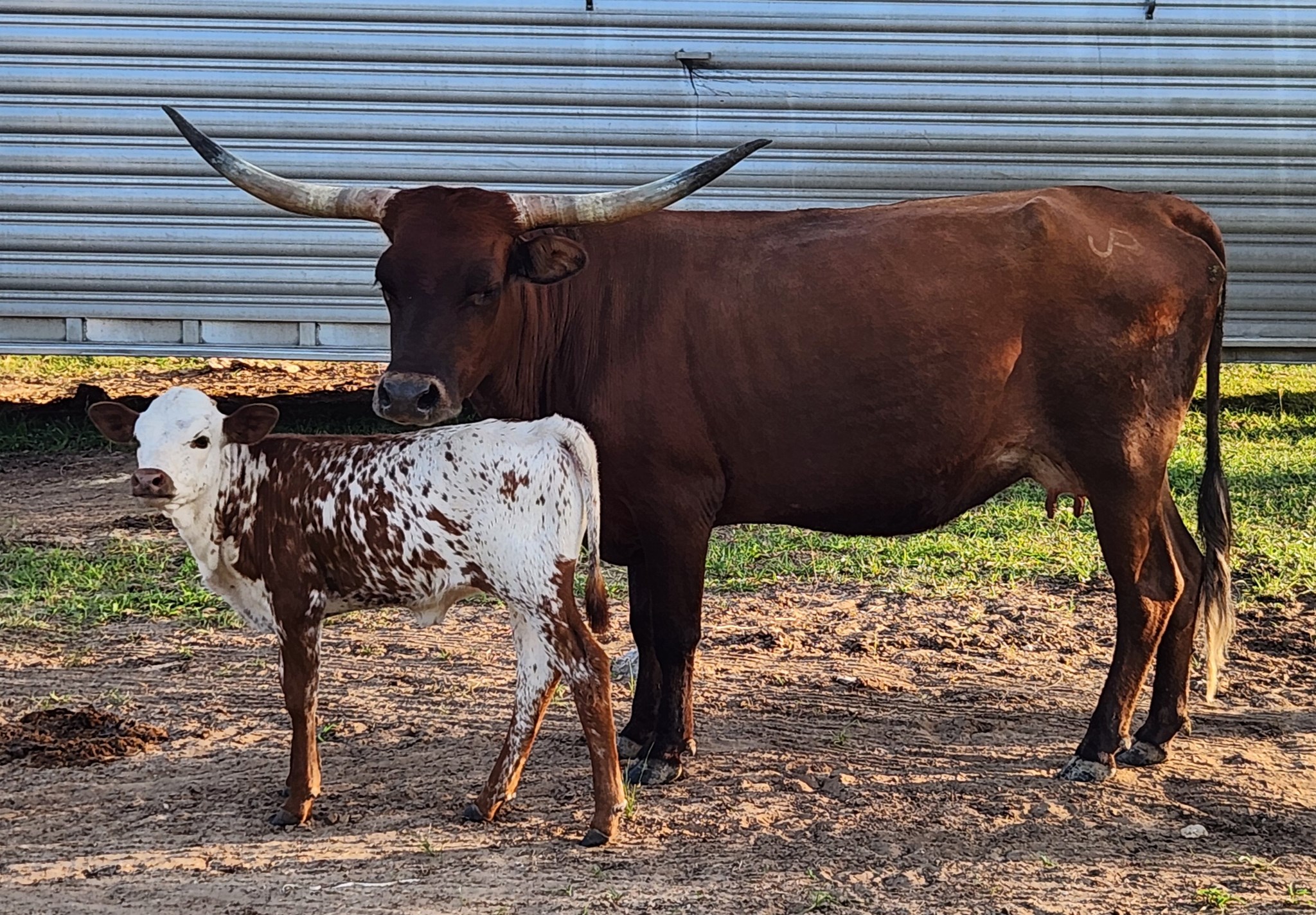 Heart is where our mini program got started. She is a straight Butler midsize with impeccable conformation and twist horn genetics. She had a beautiful heifer, JP Snow Queen, who was the Grand Champion Youth Mini Female at the National Finals in 2023. Heart had a nice mini steer in 2023 and we are keeping her 2024 heifer by V3C Chase's Creole and her 2025 heifer by Little Ace Big Bad John. Heart is bred back to Little Ace Big Bad John for her spring '26 calf.